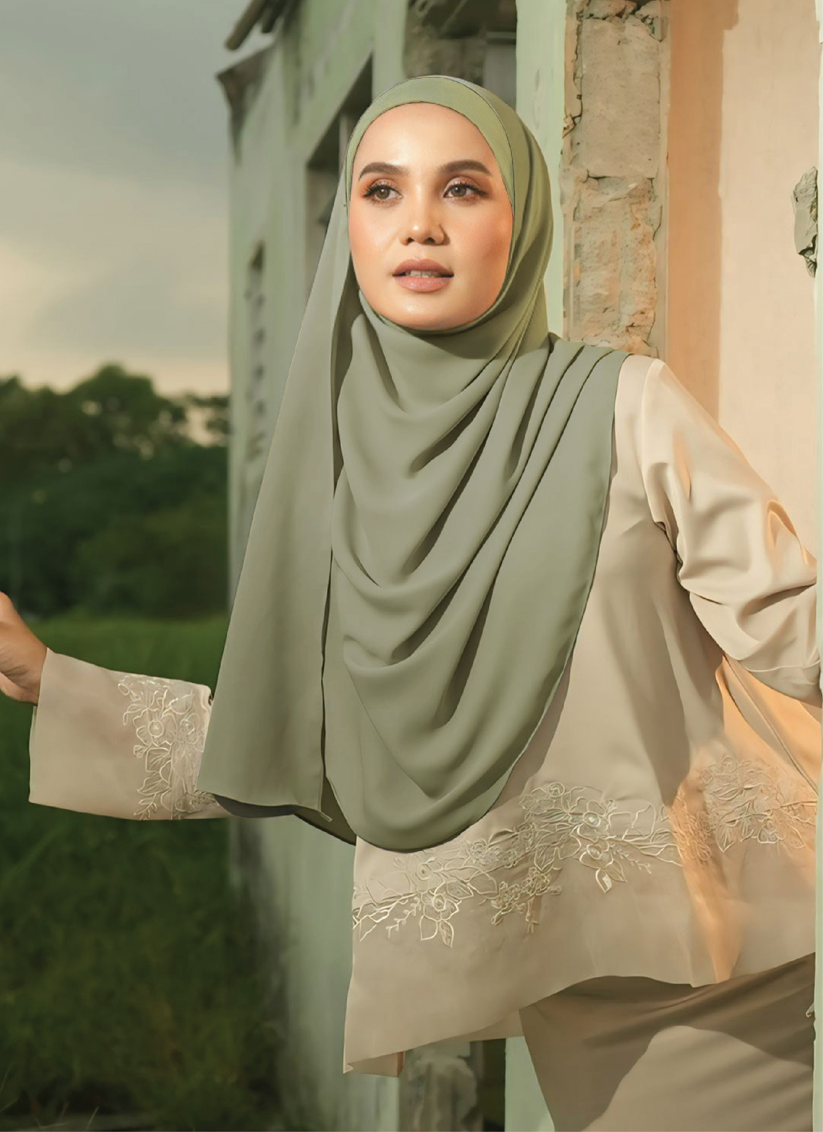 Premium Korean Chiffon - Lightweight, flowy, and soft on the skin, yet holds beutifully in place.